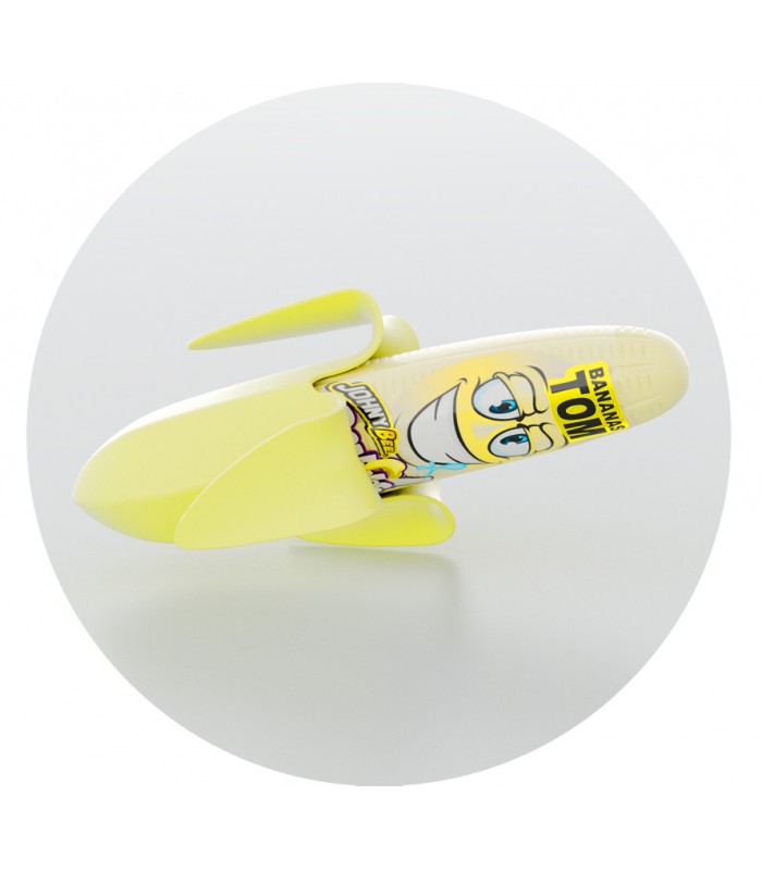 Caramelo líquido con intenso sabor a plátano. Se sirven en un contenedor de plástico con forma de banana y un spray pulverizador. Caja con 12 bananas.
