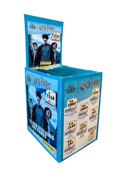 Cromos adhesivos de la colección Harry Potter, un año en Howgarts de Panini. Cada sobre contiene 6 cromos. Caja con 50 sobres.
